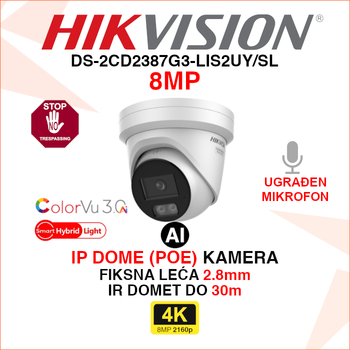 DS-2CD2387G3-LIS2UY/SL HIKVISION 4K IP KAMERA