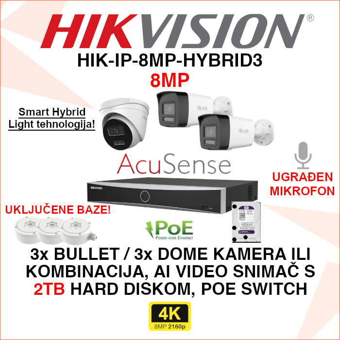 HIK-IP-8MP-HYBRID3 HIKVISION IP POE SET S 3 KAMERE
